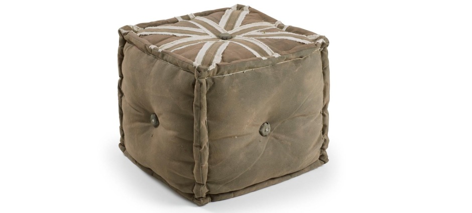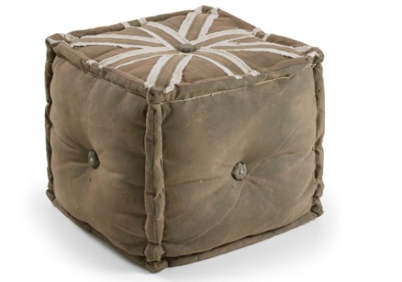 Puff en lona envejecida con relleno de algodón.