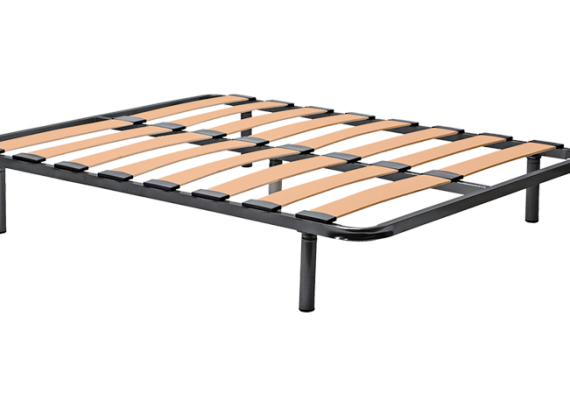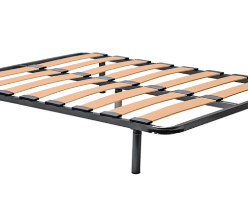 Lamas anchas de madera contrachapada de 120 mm. flexibles en función del peso con sujeción al bastidor mediante tacos de polietileno de alta resistencia.