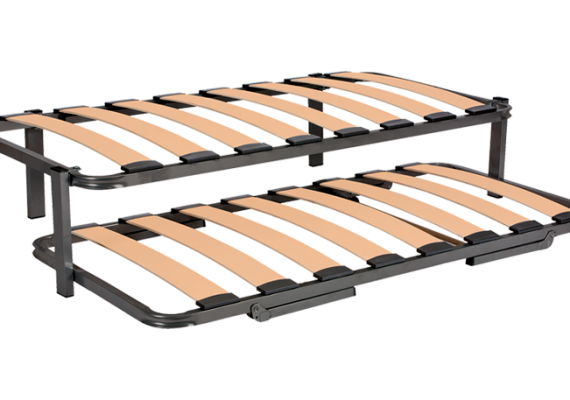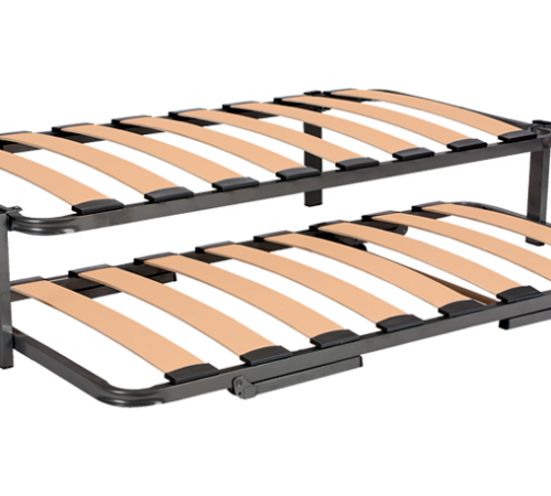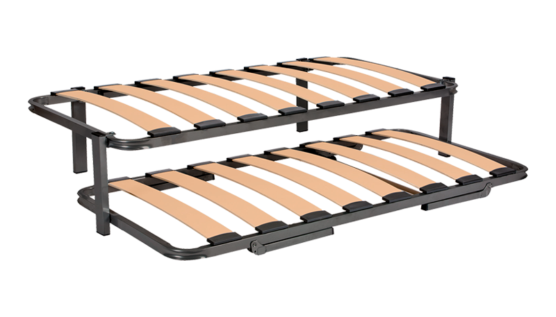 Somier inferior: Fabricado con bastidor de tubo de acero en perfil de 40×30 con juego de patas nido apertura automática.